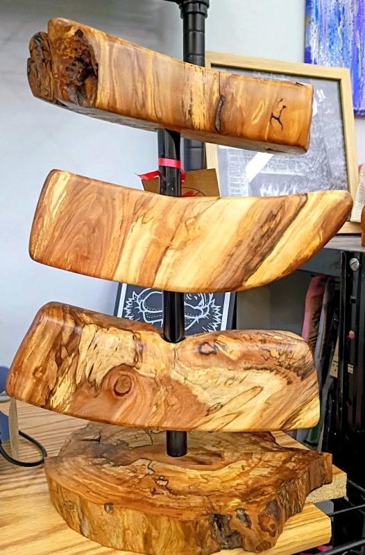 This one of a kind, hand-crafted wood sculpture is made from spalted apple woods.  It measures about 12″ tall and 10″ wide.  This unique wood piece is perfect for your living or office space (and makes a better gift)!