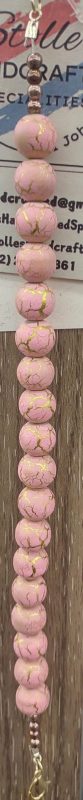 Hat Chains are removable and are used to bling up your favorite hat. Fasteners on either side of the hat chain make it easy to put on and remove. This pink crackle beaded hat chain would be a great addition to any favorite hat! Get several chains to match every outfit or mood! Need a specialized hat chain? Email us HERE