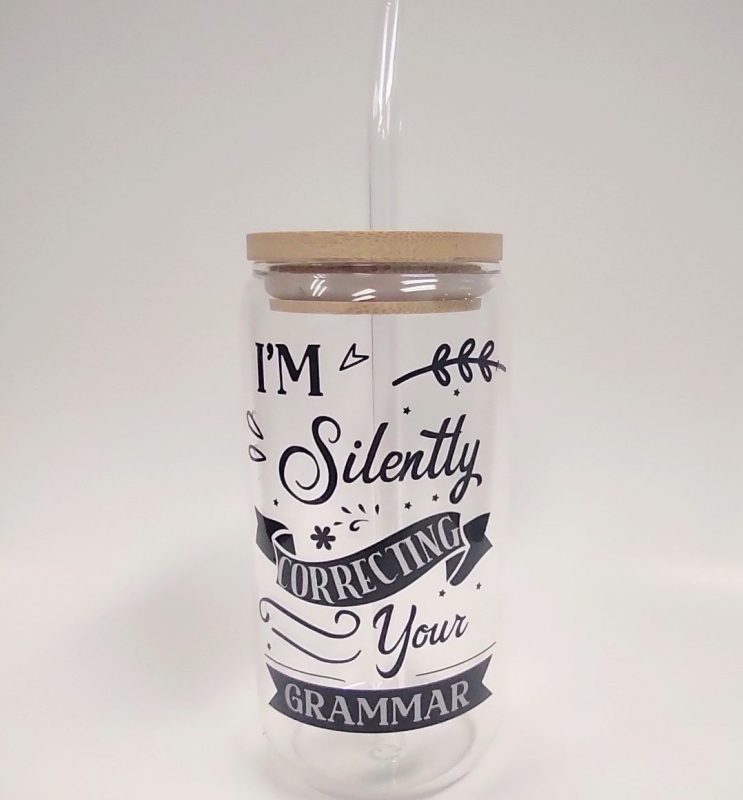 These can shaped glasses come with a bamboo lid and a glass straw for a fun way to stay hydrated! This “I’m Silently Correcting Your Grammar” glass is the perfect gift for any grammar police in your life! Each glass purchase comes with a straw brush to keep your straw clean. These reusable and hand wash only cups will last for a long time and is used to replace plastic disposable water bottles! Want a specialized cup? Email us HERE