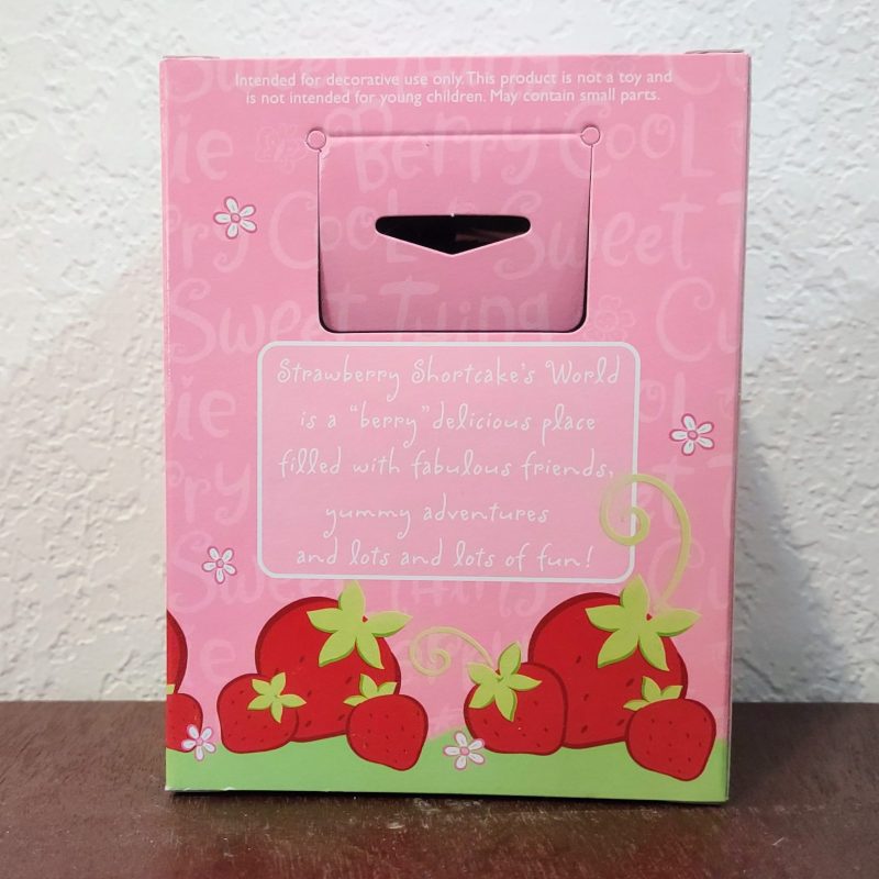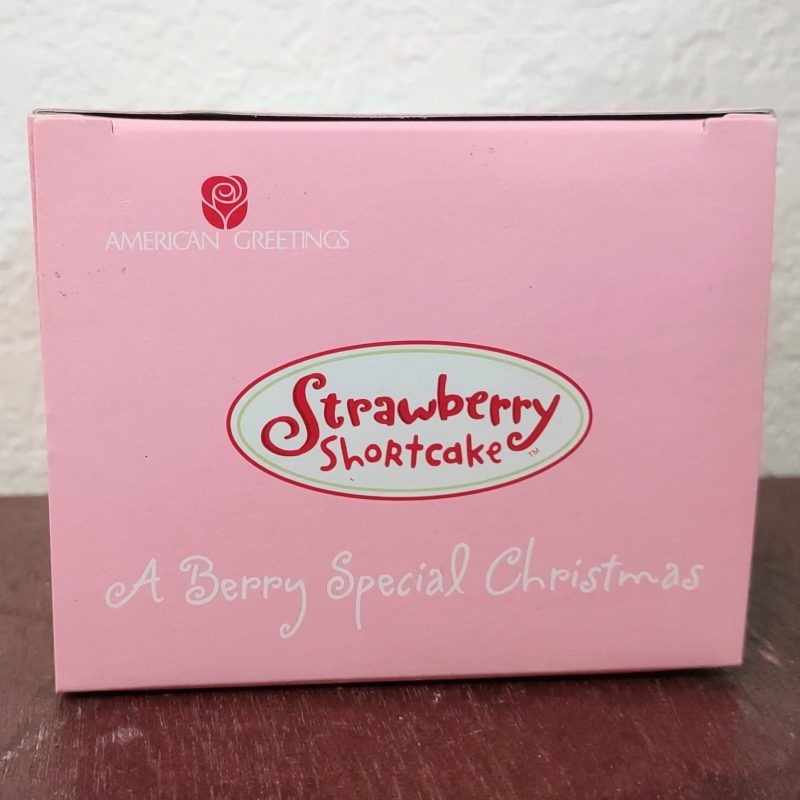 This throwback Strawberry Shortcake ornament is strawberry scented!  (or at least was in 2003 when the ornament came out).  Strawberry Shortcake is next to a strawberry that says “Have a Berry Merry Christmas”.